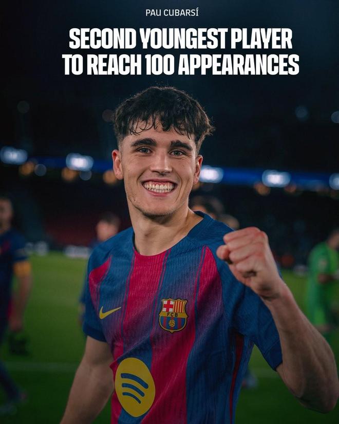 在与CD瓜达拉哈拉的国王杯比赛中,库巴西替补登场,达成巴萨生涯百场里程碑,18岁的库巴西成为巴萨队史达成百场里程碑第二年轻的球员,仅次于亚马尔。